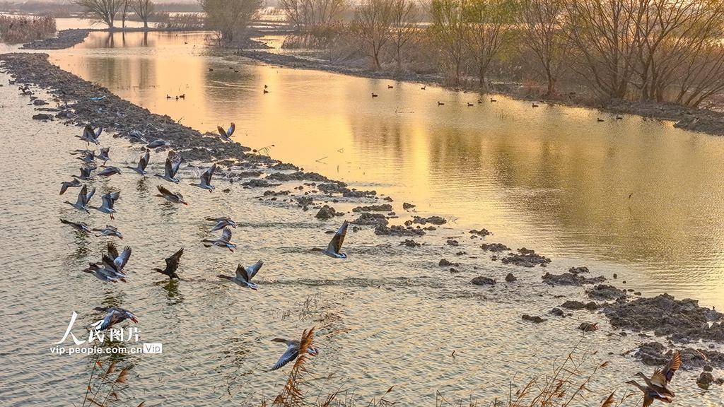 近年来稳操胜券配资,泗洪县不断加强湿地生态保护与修复,良好的生态环境使其成为候鸟迁飞通道上的重要中转站和“补给站”,每年吸引大量候鸟在此停歇。李佳摄(人民图片网)
