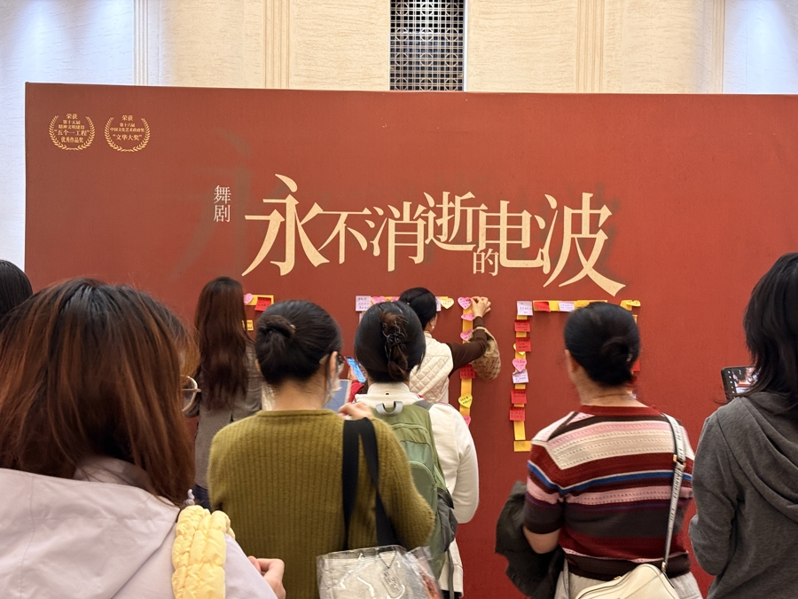 当天傍晚,离第800场《电波》开演还有两个多小时,美琪大戏院的大堂里已经涌入来自全国各地的观众,人气高涨,期待拉满。“李侠发报阁楼”的小屋格外抢眼,老照片定格着当年的峥嵘岁月,直到演出前最后一分钟,始终被观众们围得水泄不通。